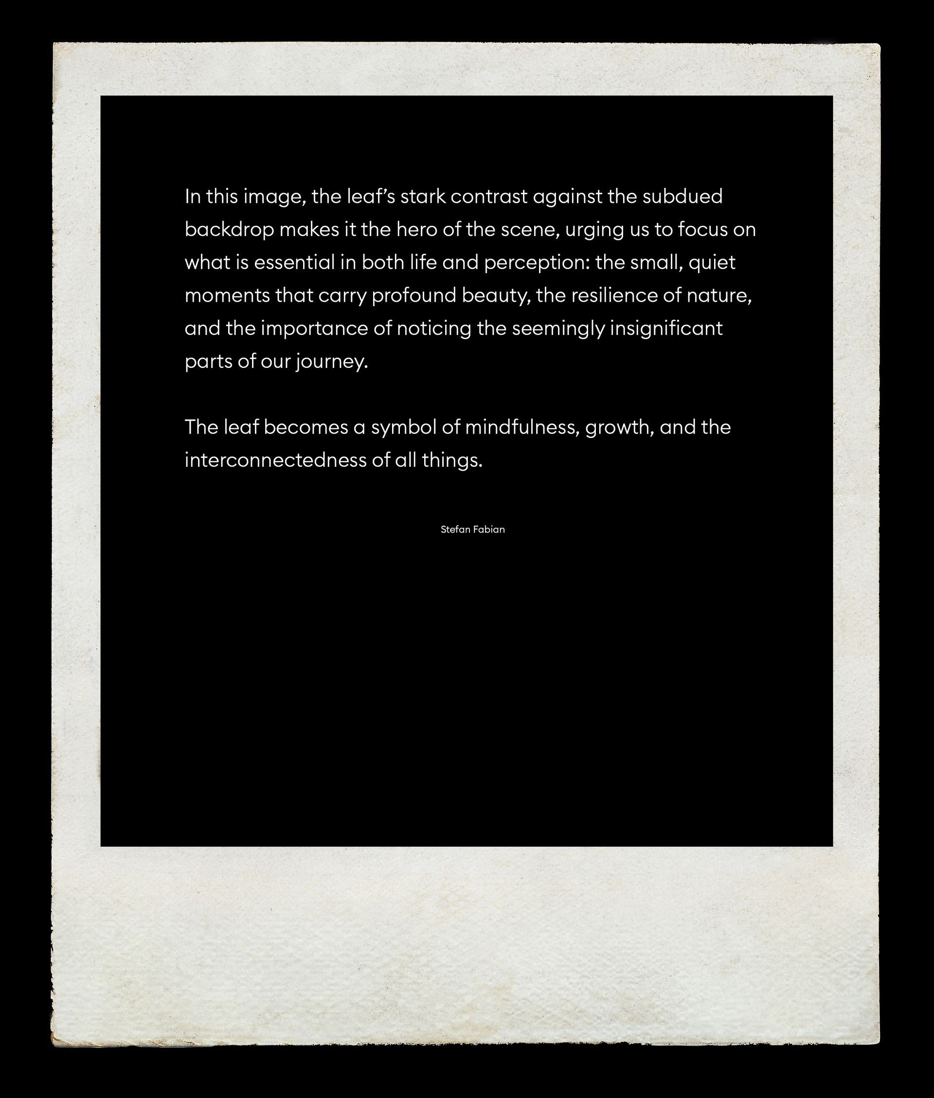 Be invited to see the world with fresh eyes. Through his precise and unique perspective, the photographer captures the essence of the moment,